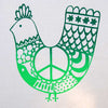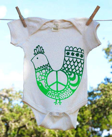 Organic Cotton Baby Onesie, Green 'Peace Chicken' on Natural Onesie