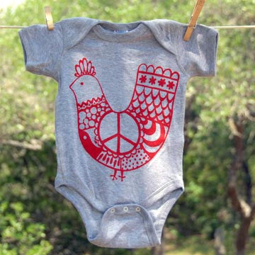 Baby Onesie, Red 'Peace Chicken' on Gray Onesie