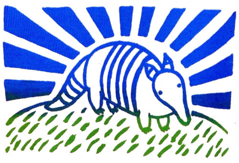 Blue and green armadillo on a natural-colored t-shirt. Equally awesome for boys and girls.